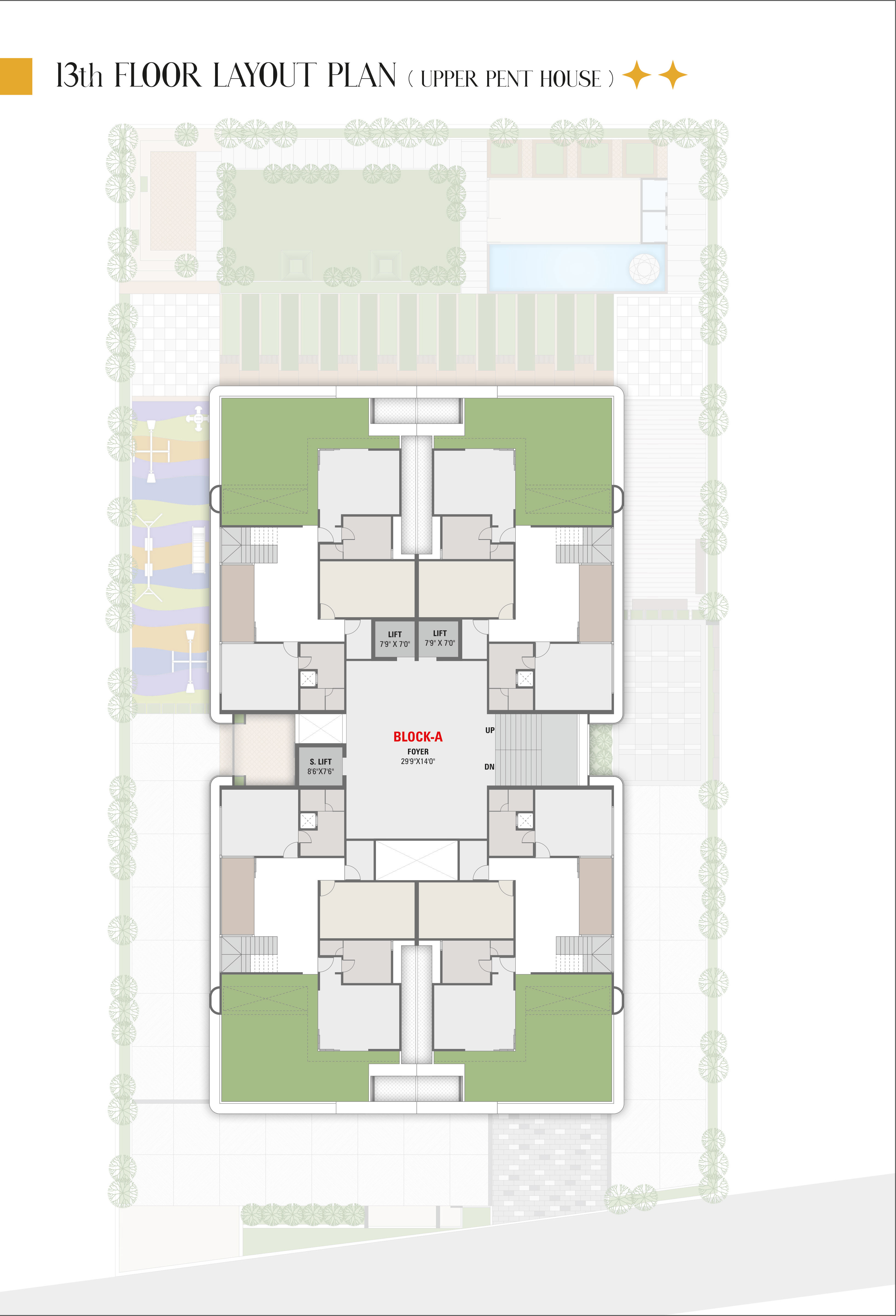 A million dollar neighbourhood for 48 lions who will mark their neighbourhood with prestige. This 5 BHK Homes & 7 BHK Pent House, 13 storey edifice is created to pamper you with luxury, grandeur and elegance.